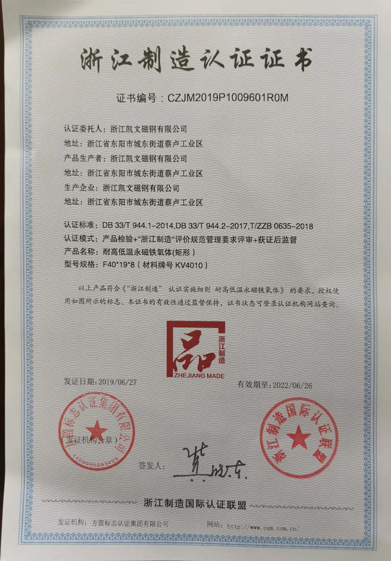 榮獲“中國磁性材料十佳名優(yōu)品牌”稱號
